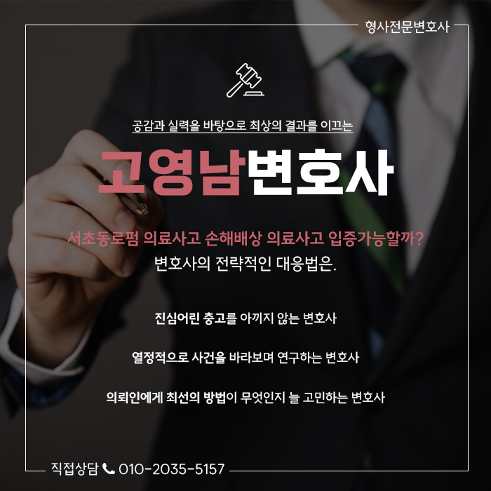 서초동로펌과 같은 의료사고 사건 경험이 풍부한 변호인의 조력을 받으면 사건의 맥락을 체계적으로 파악하고,